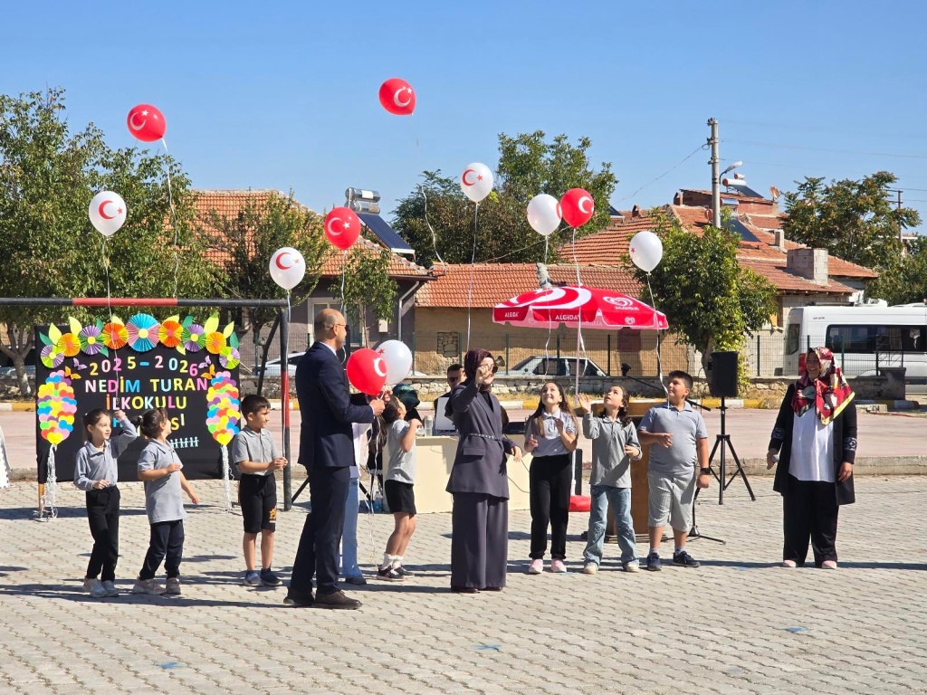 *1-A sınıfından Esma Eslem EYŞİOĞLU,1-B sınıfından Aybüke IŞIK,2-A sınıfından Muhammed Said ÖZBEY,2-B sınıfından Ecrin ÜZMEZ,3-A sınıfından Muhammed Ömer ŞIK,3-B sınıfından Emir TOKER,4-A sınıfından Elvin Deren KUZU,4-B sınıfından Müzeyyen KARAÇOR,4-C sınıfından Zafer Berk ÇELİK öğrencilerimizin özlü sözler eşliğinde 2025-2026 Eğitim Öğretim yılı için okullarımızda ilk zil sesi 8 Eylül Pazartesi günü çaldı ama İlköğretim Haftası programında temsili olarak Evciler Kaymakamımız Sayın Sümeyye Senanur AYKAÇ ilk zili çalmış ve balonları gökyüzüne bırakmışlardır.